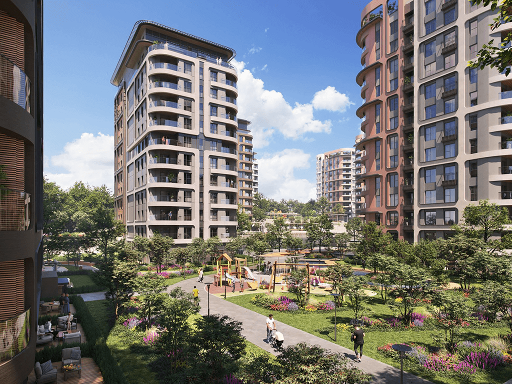 A wide range of apartment options from 1+1 to 4+1 is available, along with on-site retail stores that create a dynamic and self-sufficient community atmosphere. Specially designed playgrounds for children of all age groups are located within the project, ensuring a safe and enjoyable environment for families.