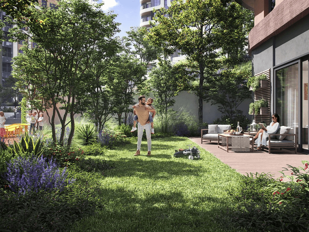 Designed to accommodate diverse lifestyles, the project introduces a new concept of modern living surrounded by rich landscaped areas. Spanning approximately 15,000 sqm of beautifully designed green spaces, the development features thoughtfully planned gardens, relaxing camellia seating areas, and tranquil landscaped islands where residents can unwind after a long day.
